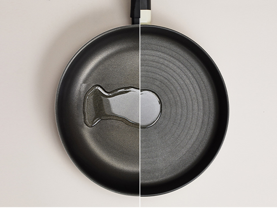 Designed with a concave base and Oil Locking system to distribute oil evenly, making cooking easier and healthier.
