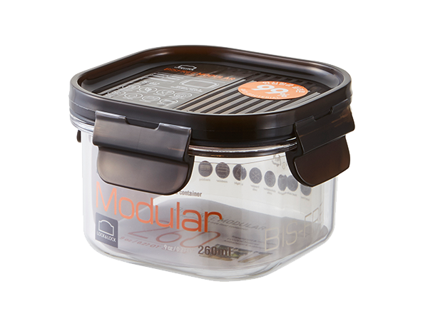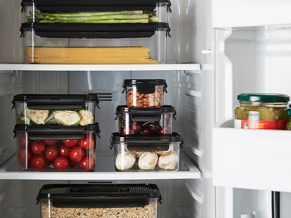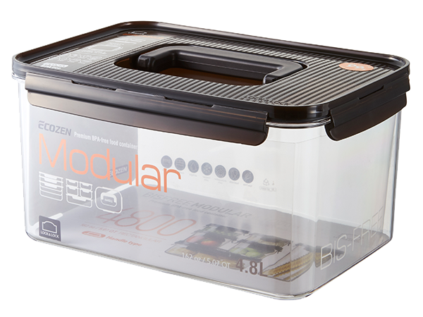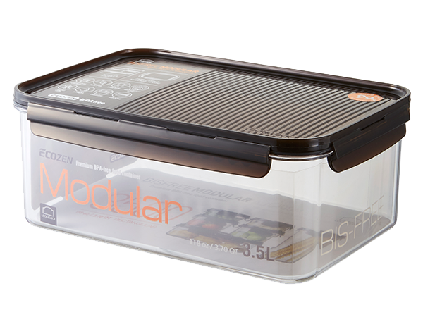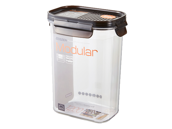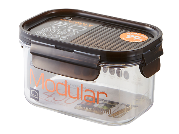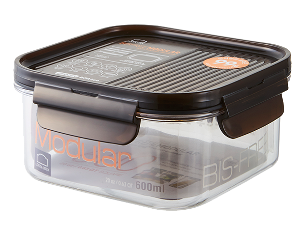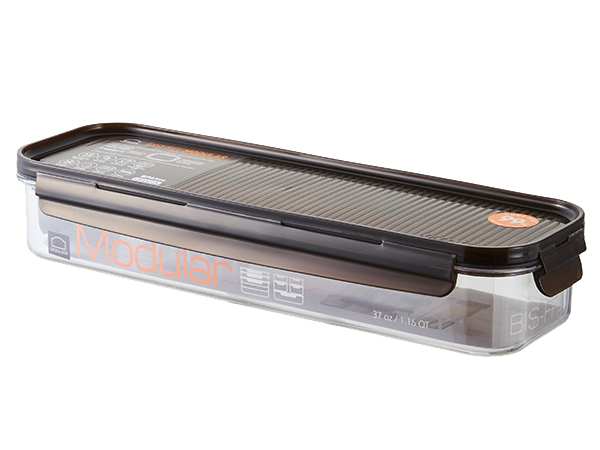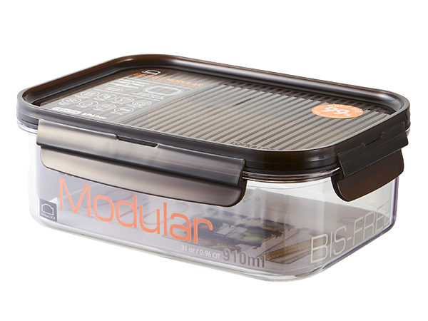 Airtight and transparent food container with a modular design. With a 6mm-high sill on the edge of the lid, you can stack the containers in a stable way.