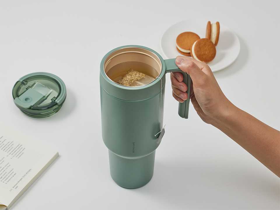 메트로 카페 탑핸들 세라믹 텀블러 900ml - 그린