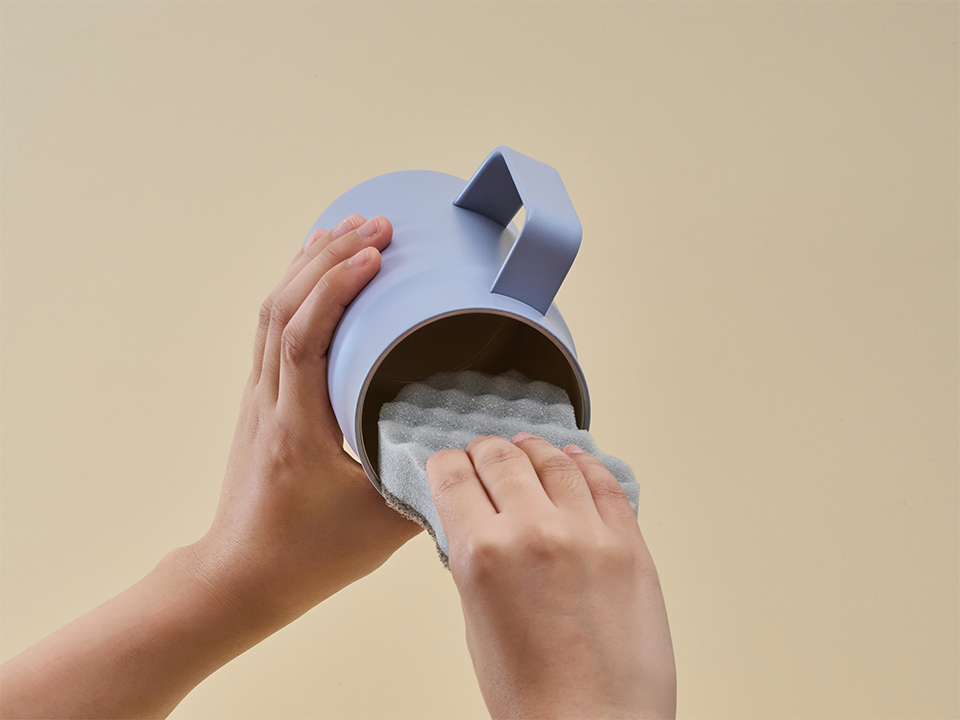 입구가 넓어 별도의 세척솔 없이 손이나 일반 수세미로 쉽게 세척이 가능합니다