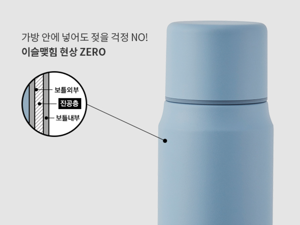 바디 내부에 진공층이 있는 이중진공방식을 더 강화시켜 기존 자사 보온병 보다 보온력이 뛰어납니다.