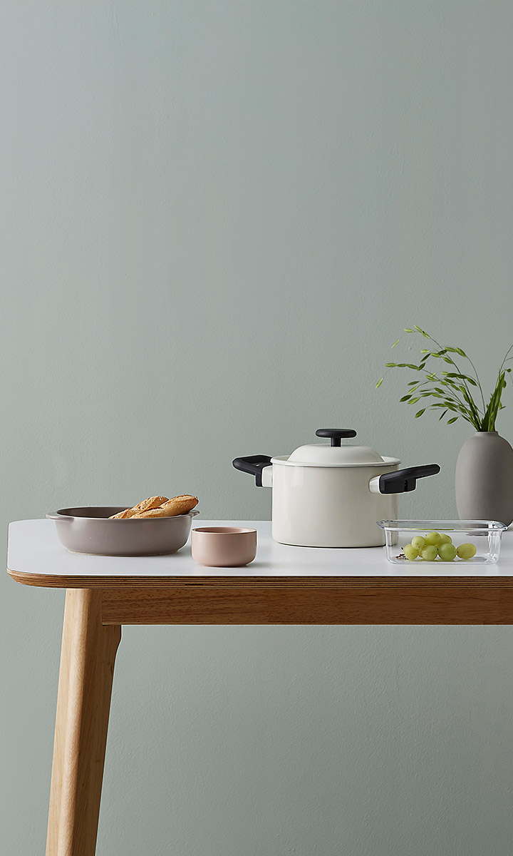 주방의 인테리어와 테이블 세팅까지 고려한 감각적인 디자인의 쿡 웨어로 당신의 쿠킹 라이프를 더욱 풍요롭게 즐겁게 만들어 줍니다.
