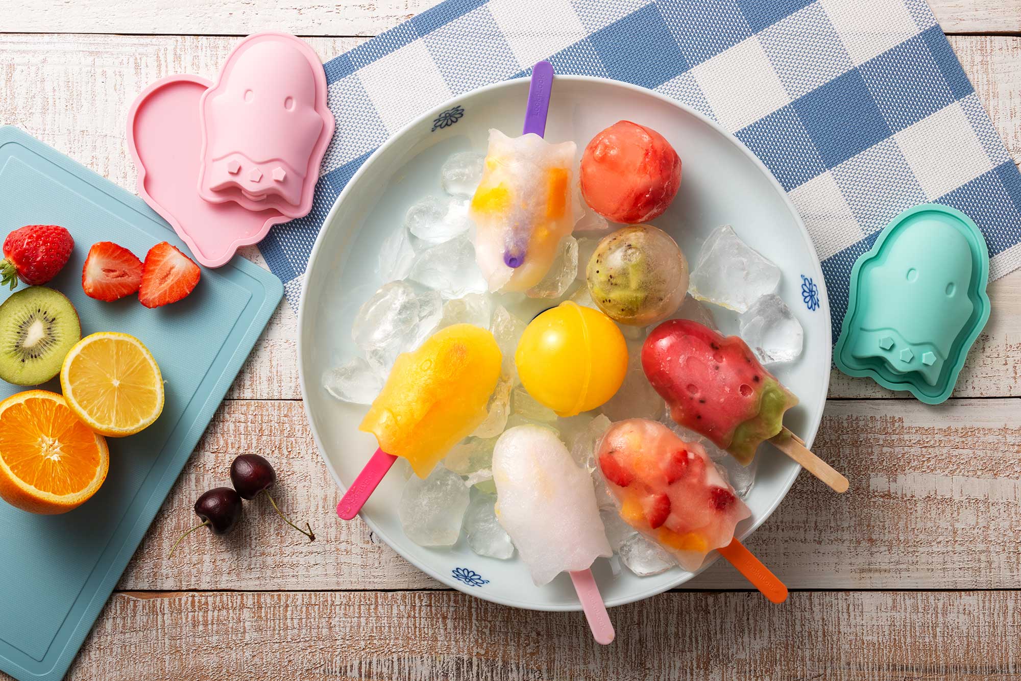 커다란 얼음 속에 든 차가운 과일의 맛이 바로 여름의 맛이죠. 톡톡톡 얼음을 깨면서 즐기는 과일 셔벗으로 더위를 잊어 보세요!