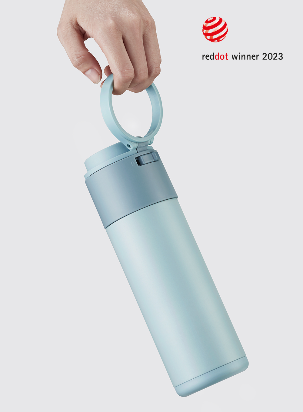 아시아 지역 사용자 조사에 따라 이동 편리성을 고려하여 디자인된 텀블러로 일체화 된 큰 원형 핸들이 별도의 백 없이도 편리한 그립감으로 이동을 편하게합니다. 사용하지 않을 때는 캡에 핸들을 접어서 고정해 놓을 수 있어 이동 시 보관도 편리합니다. 원형의 핸들을 접어서 숨길 수 있기에 '히든 문 텀블러'입니다. 원터치 오픈 방식으로 마시기 편하며 슬라이드 락으로 샐 염려가 없습니다.